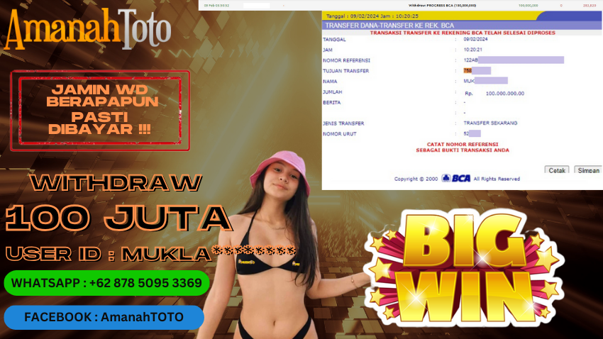 Dengan kemenangan Player di Amanahtoto Khususnya member yang beruntung Hari ini kita dapat melihat kami sebagai agen terpercaya yang selalu membayar kemenangan member secara lunas.
