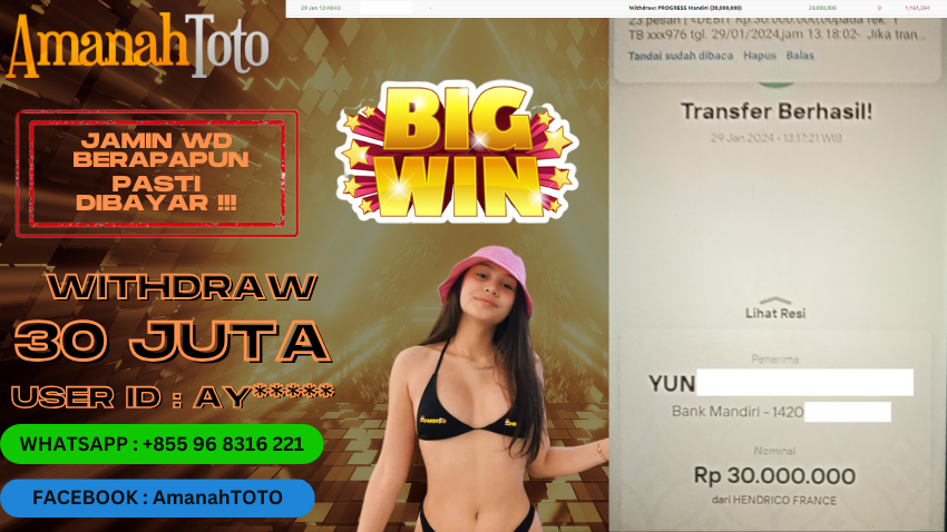Amanahtoto – Adalah Agen judi online terpercaya dan pastinya gacor yang telah membuktikan kemenangan member lewat bukti jeckpot. Dengan bukti jeckpot setiap player dapat mengetahui bahwa situs Amanahtoto memiliki tingkat kualitas terbaik dari kemenangan di game dan dijamin aman terpercaya untuk player yang ingin mencoba merasakan kemenangan dalam permainan judi online di Indonesia.