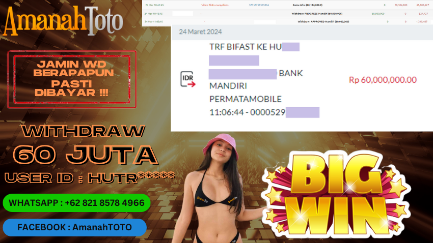 Amanahtoto – Adalah Agen judi online terpercaya dan pastinya gacor yang telah membuktikan kemenangan member lewat bukti jeckpot. Dengan bukti jeckpot setiap player dapat mengetahui bahwa situs Amanahtoto memiliki tingkat kualitas terbaik dari kemenangan di game dan dijamin aman terpercaya untuk player yang ingin mencoba merasakan kemenangan dalam permainan judi online di Indonesia.