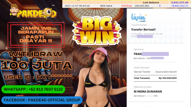 PAKDE4D JACKPOT DI PERMAINAN SLOT RP. 100.000.000 LUNAS