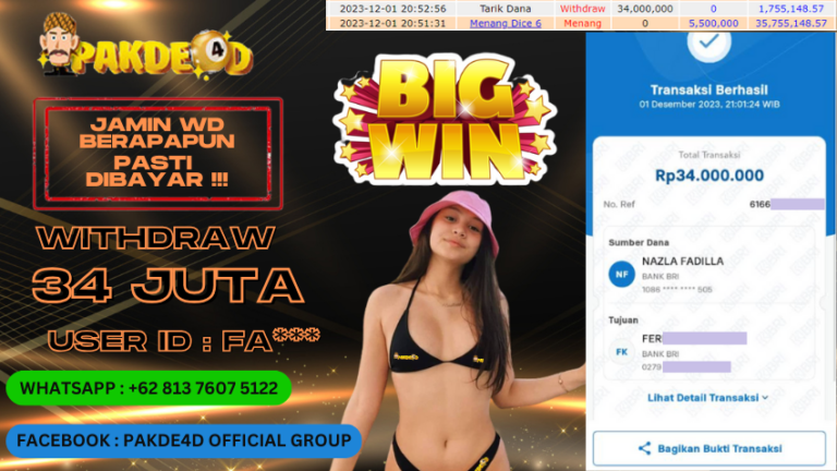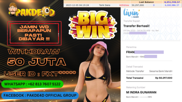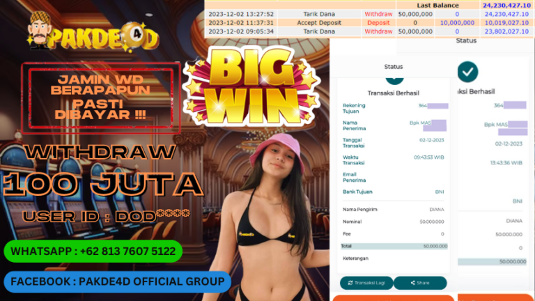 PAKDE4D JACKPOT DI PERMAINAN SLOT RP. 50.000.000 LUNAS