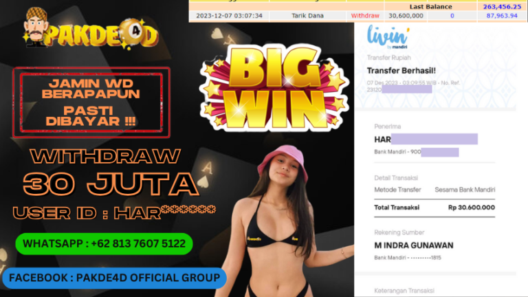 PAKDE4D JACKPOT DI PERMAINAN SLOT RP. 30.600.000 LUNAS