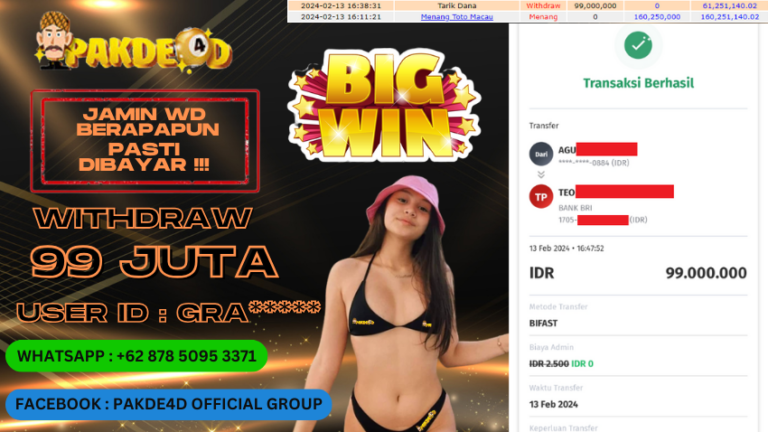 PAKDE4D – Situs Bandar Togel Online, Live Casino dan Slot Online Terpercaya yang terbukti membayar berapapun kemenangan Anda. Jika Anda masih mencari Situs Bandar Terpercaya, jangan ragu untuk bergabung bersama PAKDE4D. Dalam 1 akun Anda bisa menikmati semua permainan yang disediakan dengan minimal deposit hanya Rp. 10.000,- melalui transaksi Bank Lokal Indonesia dan Dompet Digital…
