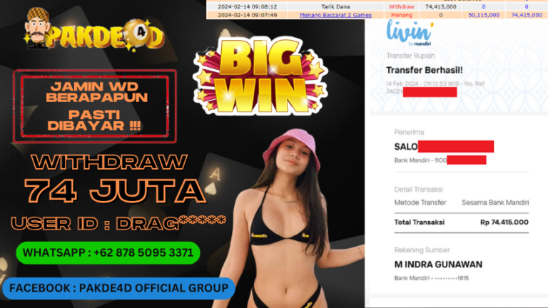 PAKDE4D JACKPOT DI PERMAINAN LIVE CASINO BACCARAT RP. 74.415.000,- LUNAS