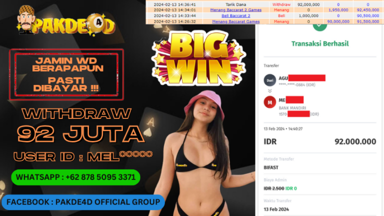 PAKDE4D JACKPOT DI PERMAINAN LIVE CASINO BACCARAT RP. 92.000.000 LUNAS