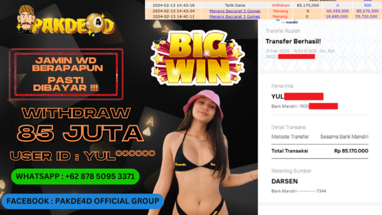 PAKDE4D JACKPOT DI PERMAINAN LIVE CASINO BACCARAT RP. 85.170.000,- LUNAS