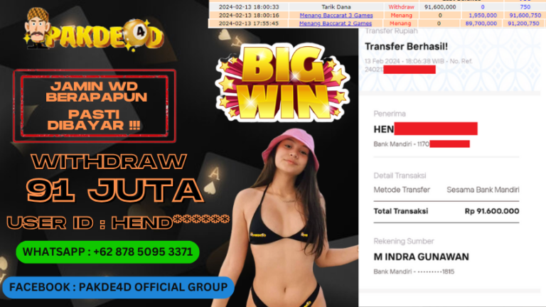 PAKDE4D JACKPOT DI PERMAINAN LIVE CASINO BACCARAT RP. 91.600.000,- LUNAS