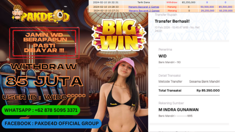 PAKDE4D JACKPOT DI PERMAINAN LIVE CASINO BACCARAT RP. 85.350.000 LUNAS