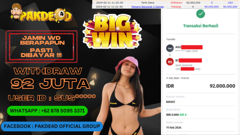 PAKDE4D JACKPOT DI PERMAINAN LIVE CASINO BACCARAT RP. 92.000.000 LUNAS