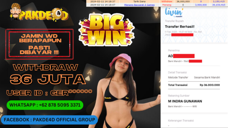 PAKDE4D JACKPOT DI PERMAINAN LIVE CASINO BACCARAT RP. 36.000.000 LUNAS