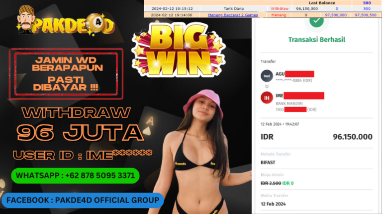 PAKDE4D JACKPOT DI PERMAINAN LIVE CASINO BACCARAT RP. 96.150.000 LUNAS