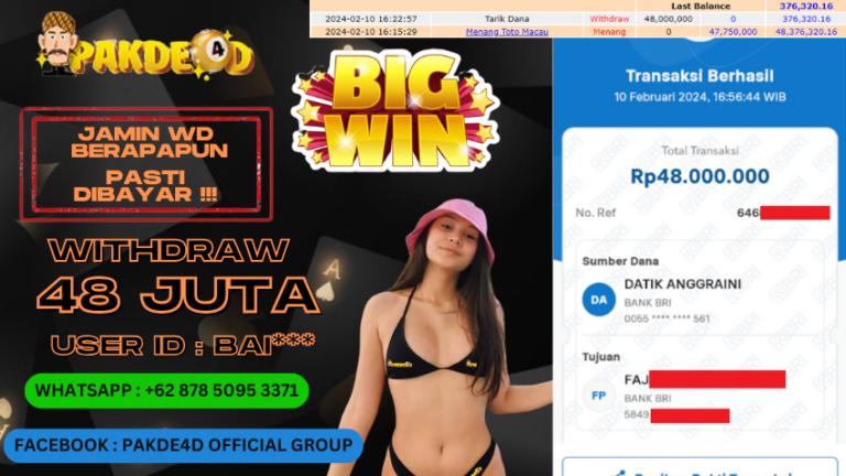 PAKDE4D JACKPOT DI PERMAINAN LIVE GAME TOTO MACAU 4D RP. 48.000.000 LUNAS