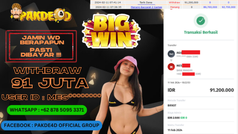 PAKDE4D JACKPOT DI PERMAINAN LIVE CASINO BACCARAT RP. 91.200.000 LUNAS