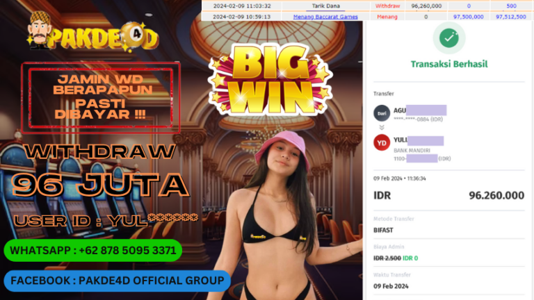 PAKDE4D JACKPOT DI PERMAINAN LIVE CASINO BACCARAT RP. 96.260.000 LUNAS