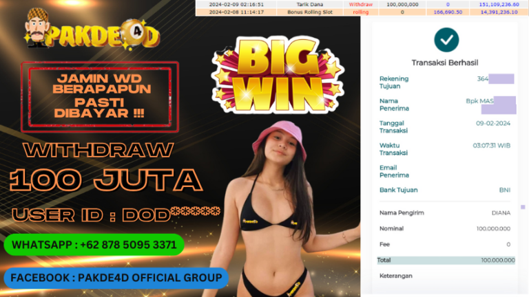 PAKDE4D JACKPOT DI PERMAINAN SLOT RP. 100.000.000 LUNAS