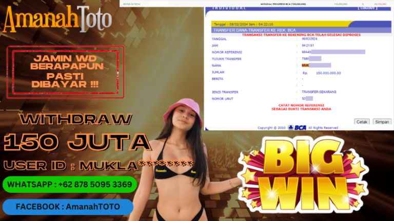 Amanahtoto – Adalah Agen judi online terpercaya dan pastinya gacor yang telah membuktikan kemenangan member lewat bukti jeckpot. Dengan bukti jeckpot setiap player dapat mengetahui bahwa situs Amanahtoto memiliki tingkat kualitas terbaik dari kemenangan di game dan dijamin aman terpercaya untuk player yang ingin mencoba merasakan kemenangan dalam permainan judi online di Indonesia. Dengan kemenangan Player di Amanahtoto Khususnya member…