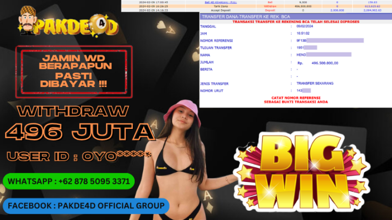 PAKDE4D JACKPOT DI PERMAINAN SLOT RP. 496.500.000 LUNAS