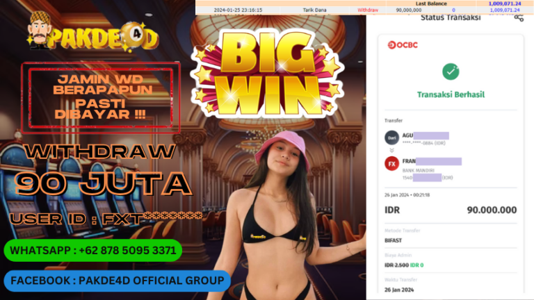 PAKDE4D JACKPOT DI PERMAINAN SLOT RP. 90.000.000 LUNAS