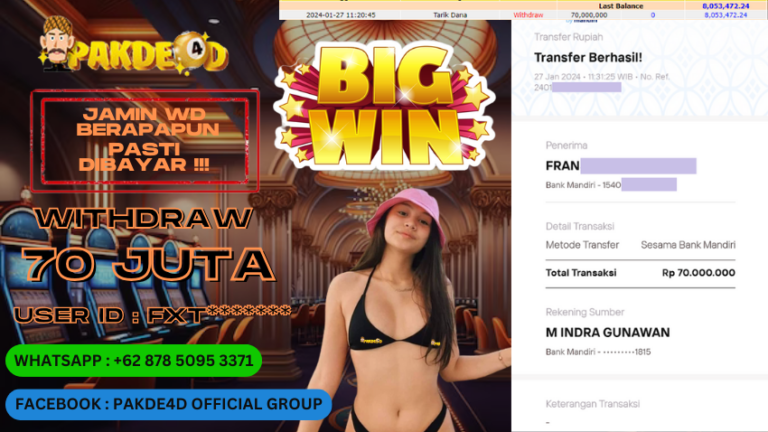 PAKDE4D JACKPOT DI PERMAINAN SLOT RP. 70.000.000 LUNAS