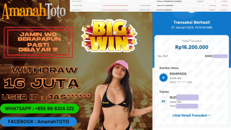 Amanahtoto – Adalah Agen judi online terpercaya dan pastinya gacor yang telah membuktikan kemenangan member lewat bukti jeckpot. Dengan bukti jeckpot setiap player dapat mengetahui bahwa situs Amanahtoto memiliki tingkat kualitas terbaik dari kemenangan di game dan dijamin aman terpercaya untuk player yang ingin mencoba merasakan kemenangan dalam permainan judi online di Indonesia. Dengan kemenangan Player di Amanahtoto Khususnya member…