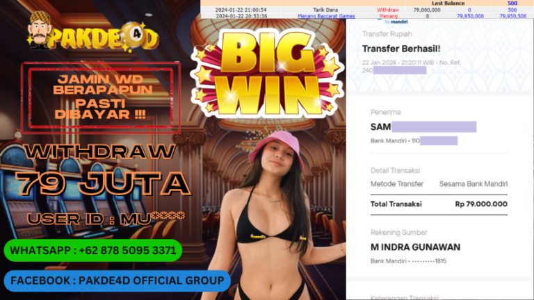 PAKDE4D JACKPOT DI PERMAINAN LIVE CASINO BACCARAT RP. 79.000.000 LUNAS