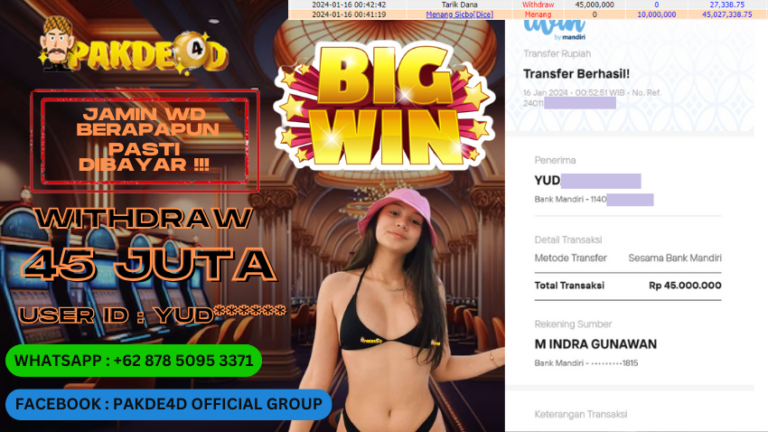 PAKDE4D JACKPOT DI PERMAINAN SLOT RP. 45.000.000 LUNAS
