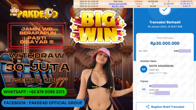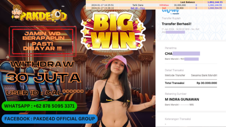 PAKDE4D JACKPOT DI PERMAINAN SLOT RP. 30.000.000 LUNAS