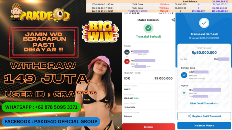 PAKDE4D JACKPOT DI PERMAINAN TOGEL PASARAN CHINA POOLS JP RP. 185.220.000 WD RP. 149.000.000 LUNAS