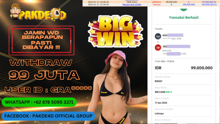 PAKDE4D JACKPOT DI PERMAINAN TOGEL PASARAN CHINA POOLS JP RP. 196.000.000,- WD RP. 99.000.000,- LUNAS