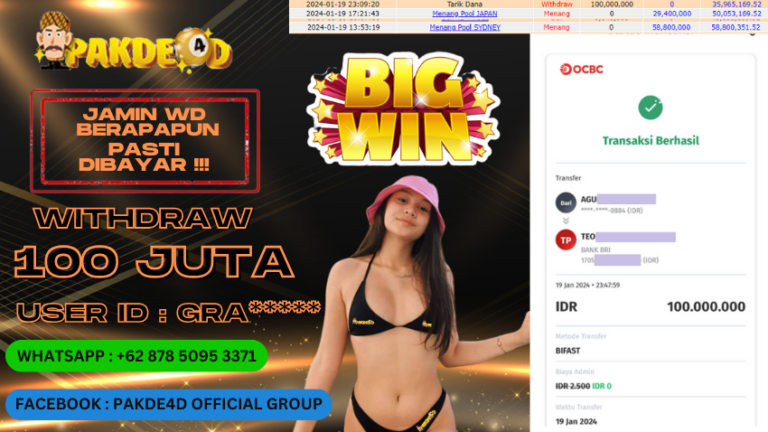 PAKDE4D JACKPOT DI PERMAINAN SLOT RP. 100.000.000 LUNAS