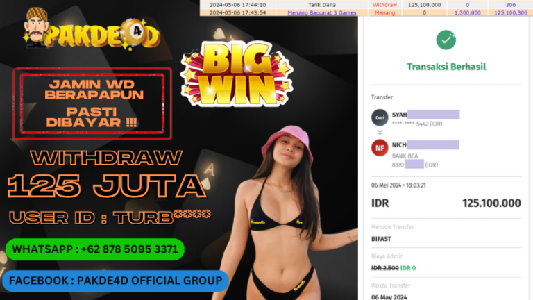 PAKDE4D JACKPOT DI PERMAINAN LIVE CASINO BACCARAT RP. 125.100.000,- LUNAS