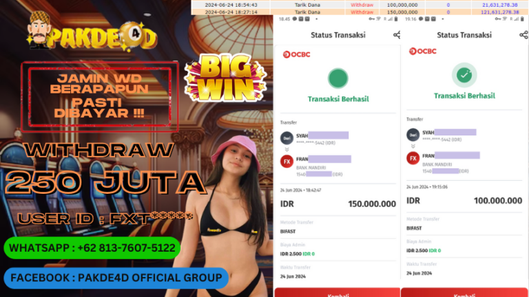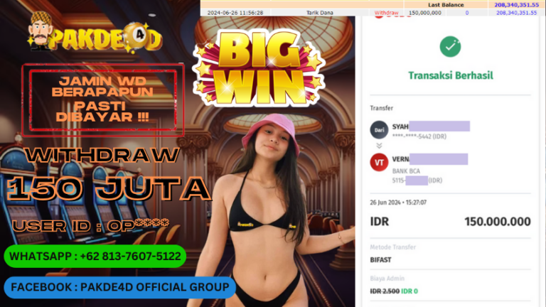 PAKDE4D JACKPOT DI PERMAINAN SLOT RP. 150.000.000,- LUNAS