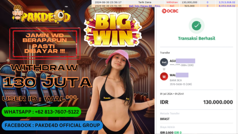 PAKDE4D JACKPOT DI PERMAINAN SLOT RP. 130.000.000,- LUNAS