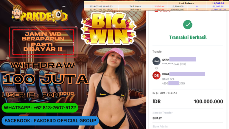 PAKDE4D JACKPOT DI PERMAINAN SLOT RP. 100.000.000,- LUNAS