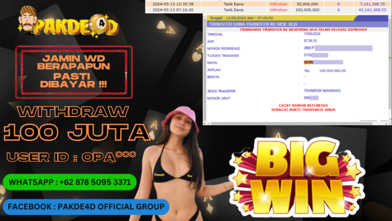 PAKDE4D JACKPOT DI PERMAINAN LIVE CASINO BACCARAT RP. 100.170.000,- LUNAS