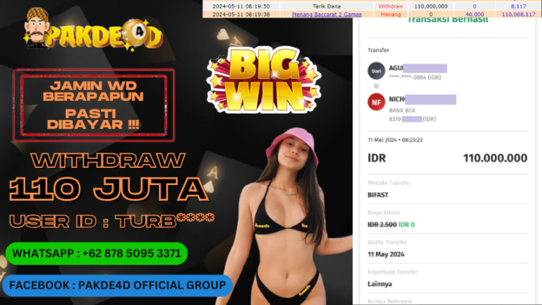 PAKDE4D JACKPOT DI PERMAINAN LIVE CASINO BACCARAT RP. 110.000.000,- LUNAS