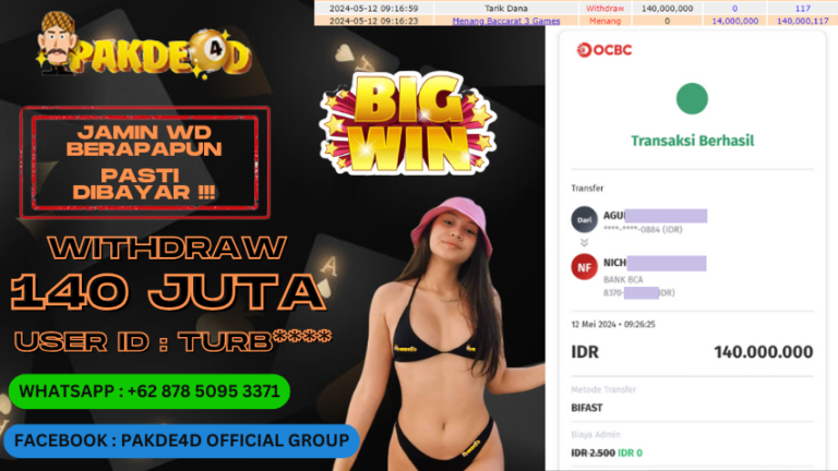 PAKDE4D JACKPOT DI PERMAINAN LIVE CASINO BACCARAT RP. 140.000.000,- LUNAS