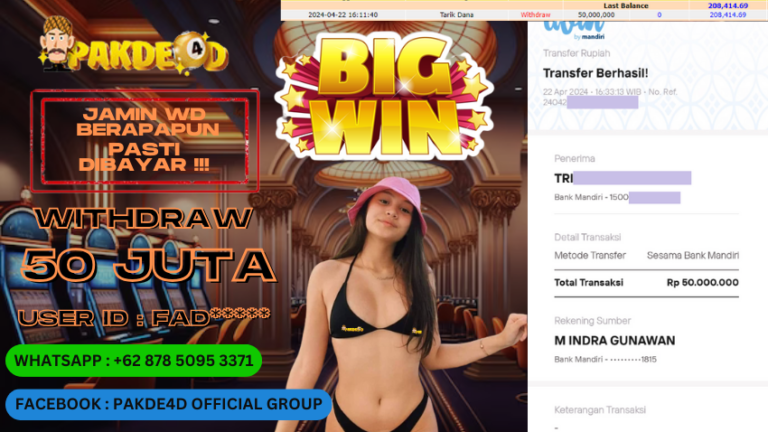 PAKDE4D JACKPOT DI PERMAINAN SLOT SWEET BONANZA RP. 50.000.000,- LUNAS