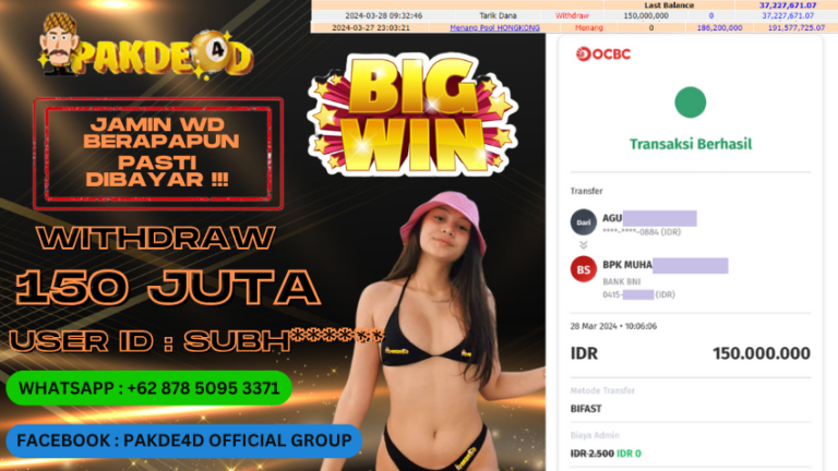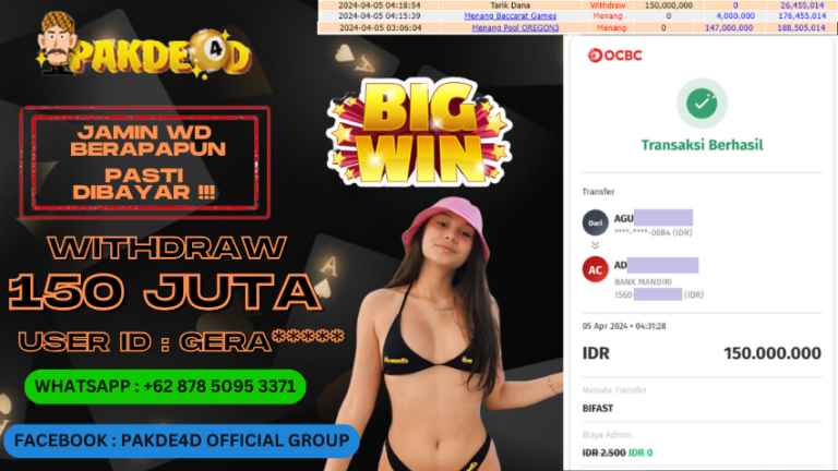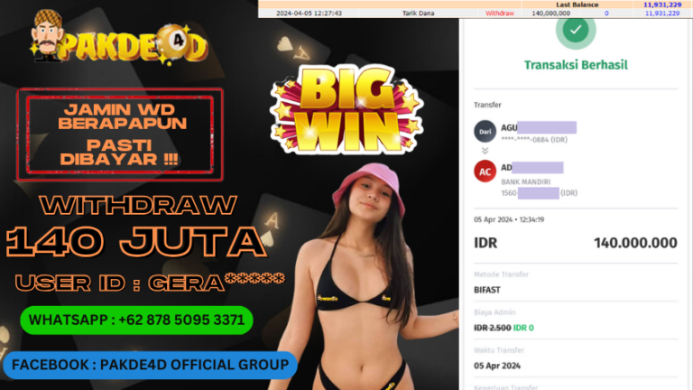 PAKDE4D JACKPOT DI PERMAINAN LIVE CASINO BACCARAT RP. 140.000.000,- LUNAS