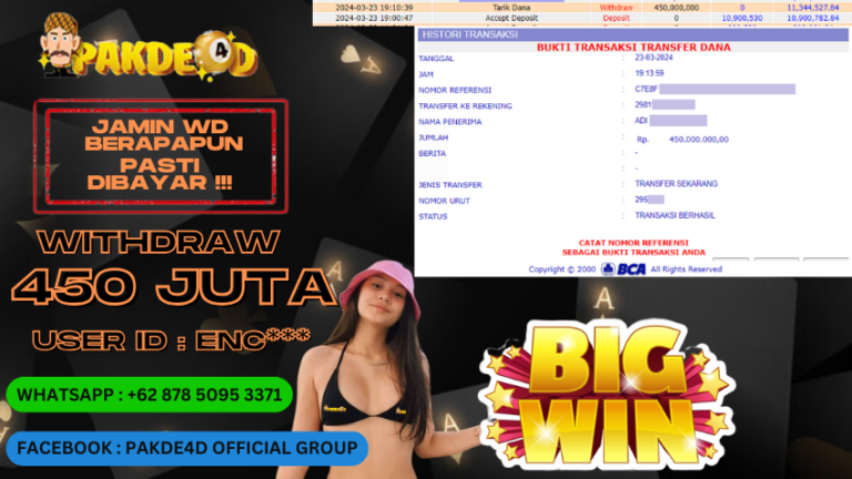 PAKDE4D JACKPOT DI PERMAINAN SLOT MAHJONG WAYS RP. 450.000.000,- LUNAS