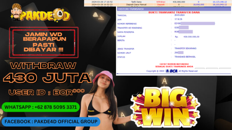 PAKDE4D – Situs Bandar Togel Online, Live Casino dan Slot Online Terpercaya yang terbukti membayar berapapun kemenangan Anda. Jika Anda masih mencari Situs Bandar Terpercaya, jangan ragu untuk bergabung bersama PAKDE4D. Dalam 1 akun Anda bisa menikmati semua permainan yang disediakan dengan minimal deposit hanya Rp. 10.000,- melalui transaksi Bank Lokal Indonesia dan Dompet Digital…