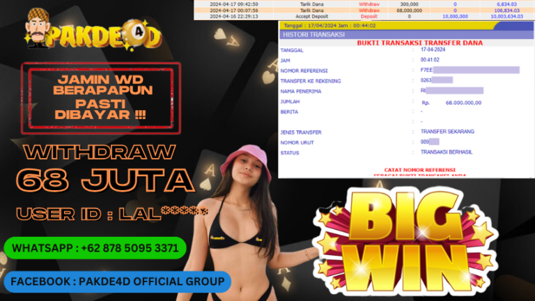 PAKDE4D JACKPOT DI PERMAINAN SLOT SWEET BONANZA RP. 68.000.000,- LUNAS