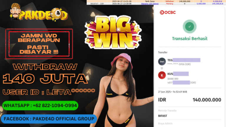 PAKDE4D JACKPOT DI PERMAINAN SLOT RP. 136.000.000,- LUNAS