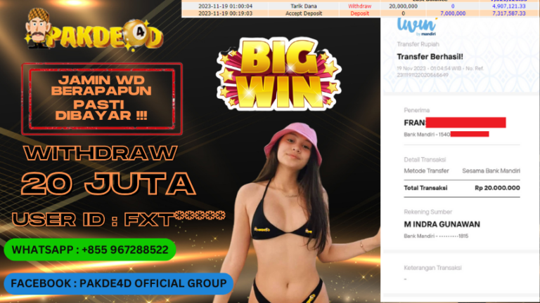 PAKDE4D JACKPOT DI PERMAINAN SLOT RP. 20.000.000 LUNAS