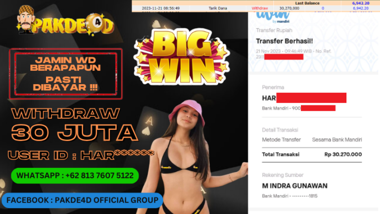 PAKDE4D JACKPOT DI PERMAINAN SLOT RP. 30.270.000 LUNAS