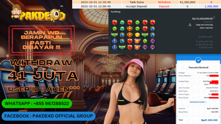 PAKDE4D JACKPOT DI PERMAINAN SLOT RP. 41.350.000 LUNAS
