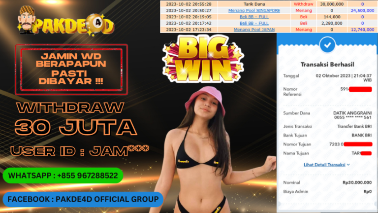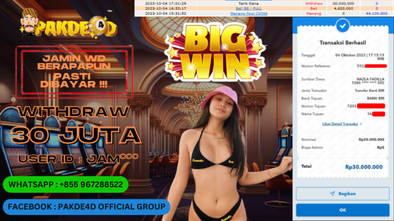 PAKDE4D JACKPOT DI PERMAINAN SLOT RP. 30.000.000 LUNAS