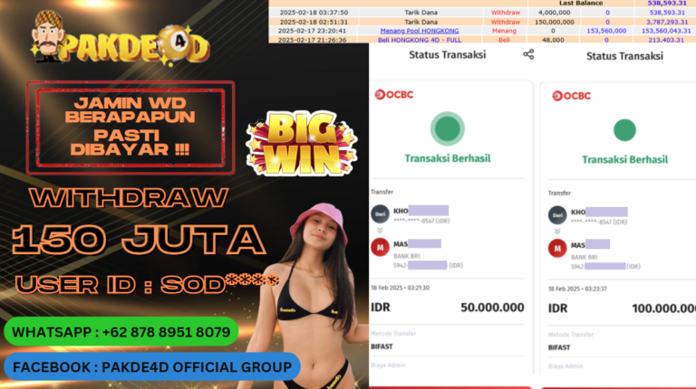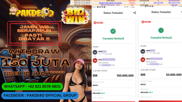 PAKDE4D JACKPOT DI PERMAINAN TOTOMACAU 5D RP. 150.000.000,- LUNAS
