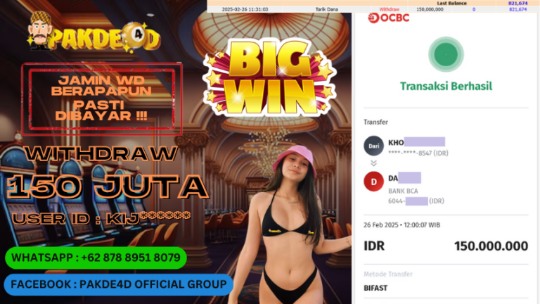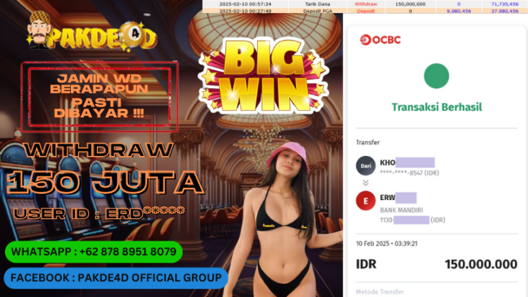 PAKDE4D JACKPOT DI PERMAINAN SLOT RP. 150.000.000,- LUNAS