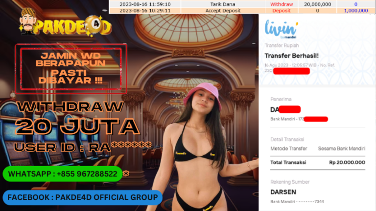 PAKDE4D – Situs Bandar Togel Online, Live Casino dan Slot Online Terpercaya yang terbukti membayar berapapun kemenangan Anda. Jika Anda masih mencari Situs Bandar Terpercaya, jangan ragu untuk bergabung bersama PAKDE4D. Dalam 1 akun Anda bisa menikmati semua permainan yang disediakan dengan minimal deposit hanya Rp. 10.000,- melalui transaksi Bank Lokal Indonesia dan Dompet Digital…